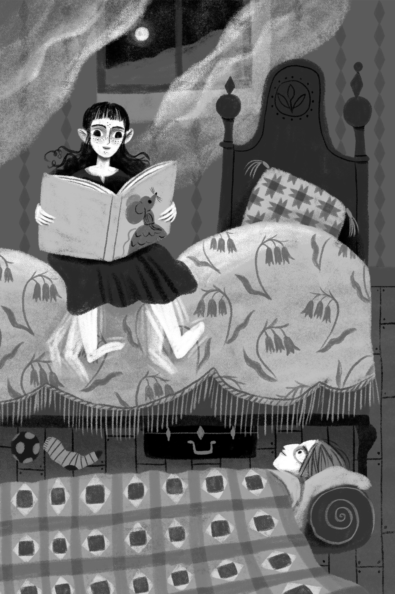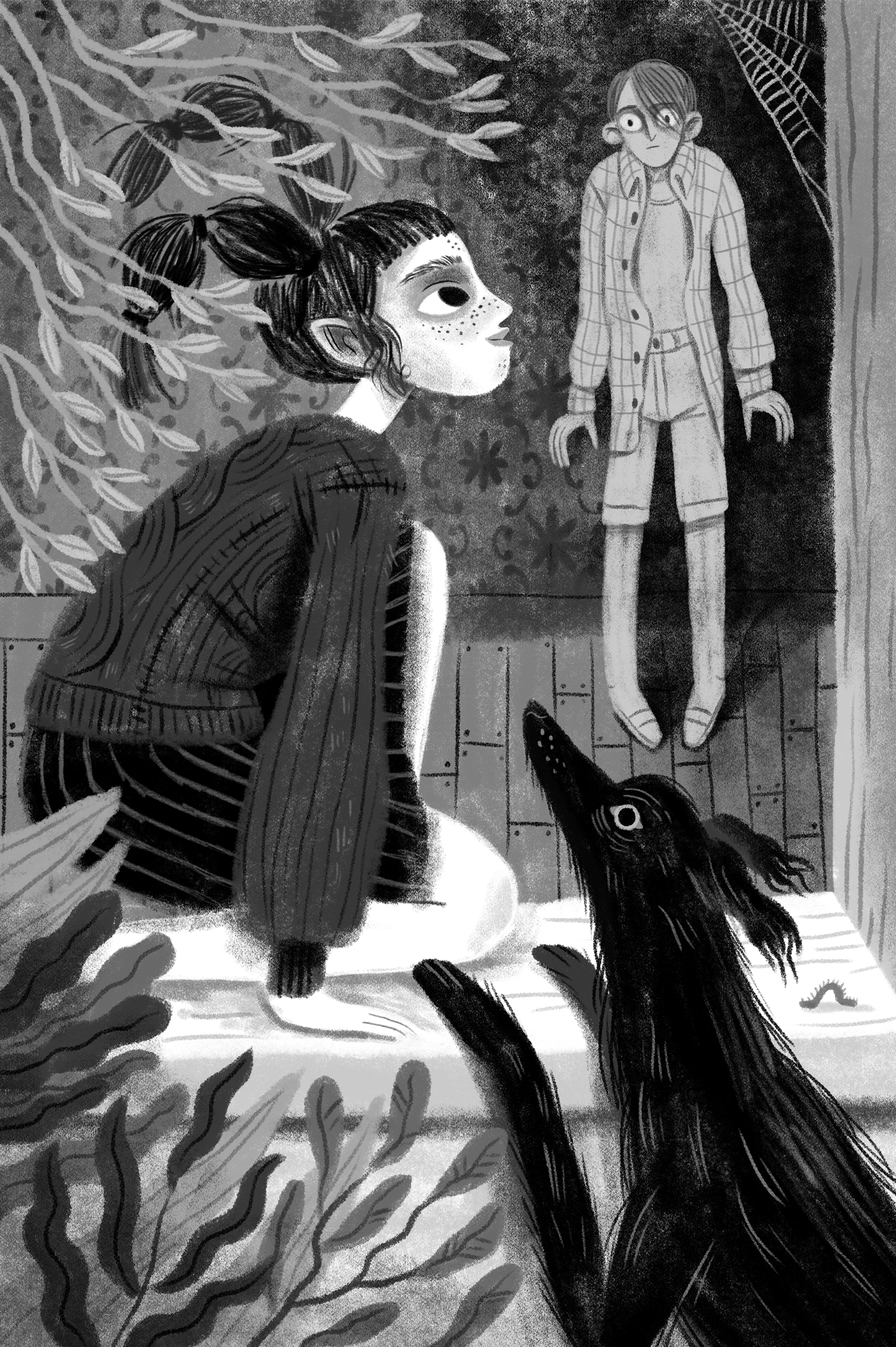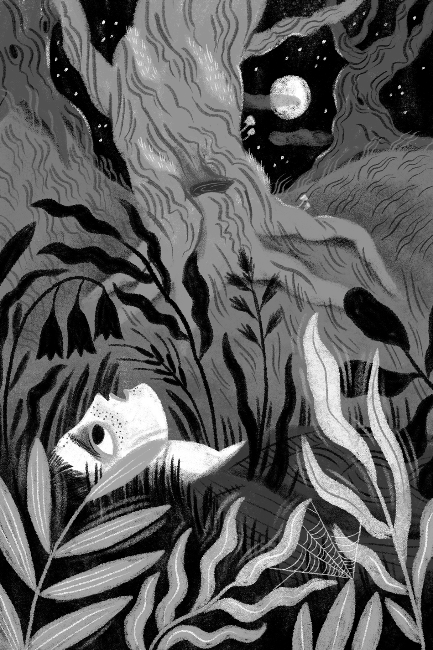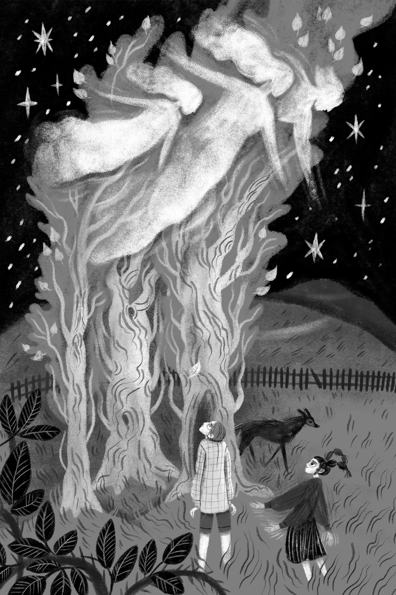Cover art, design and lettering, and interior illustrations for Agáta és a jegenyenyár, middle grade fiction book by Andrea Vészits.