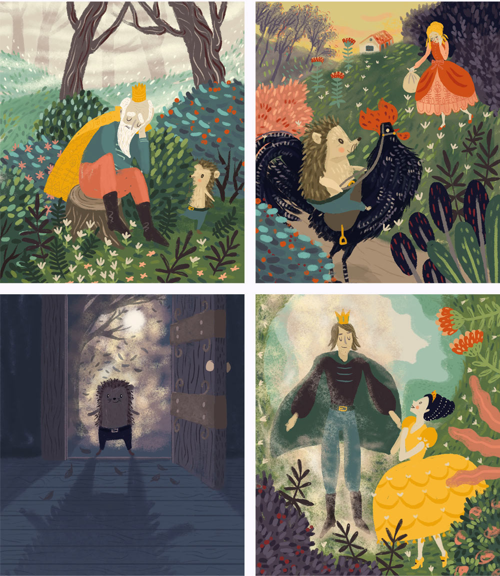 Illustrations for the folk tale 'The Hedgehog' from Elek Benedek