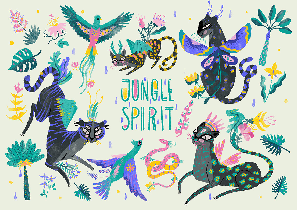 Jungle Spirit Illustration and Temporary Tattoo Set