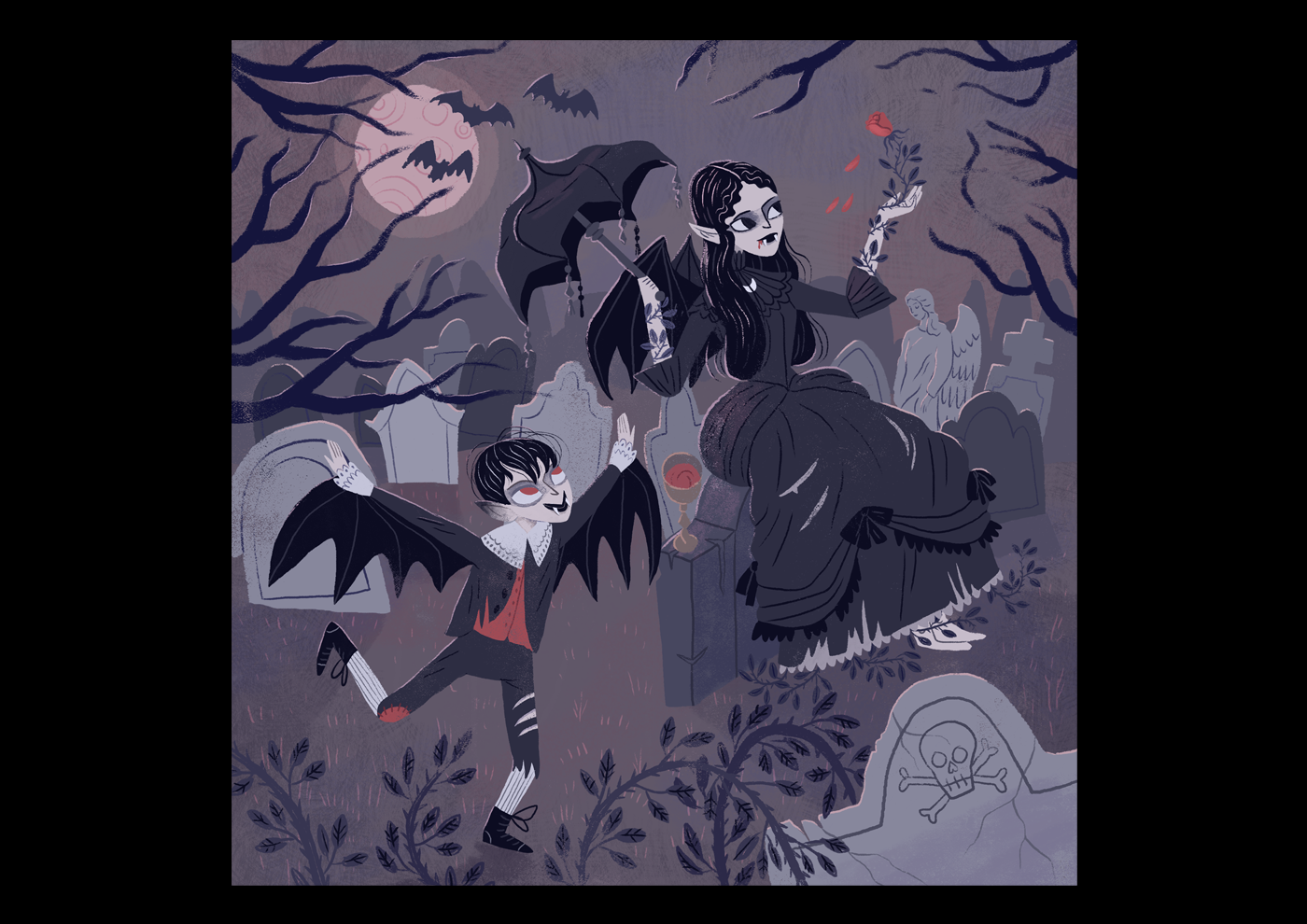 Vampires and other nocturnal creatures inspired by Mab's Drawlloween Club 2018.