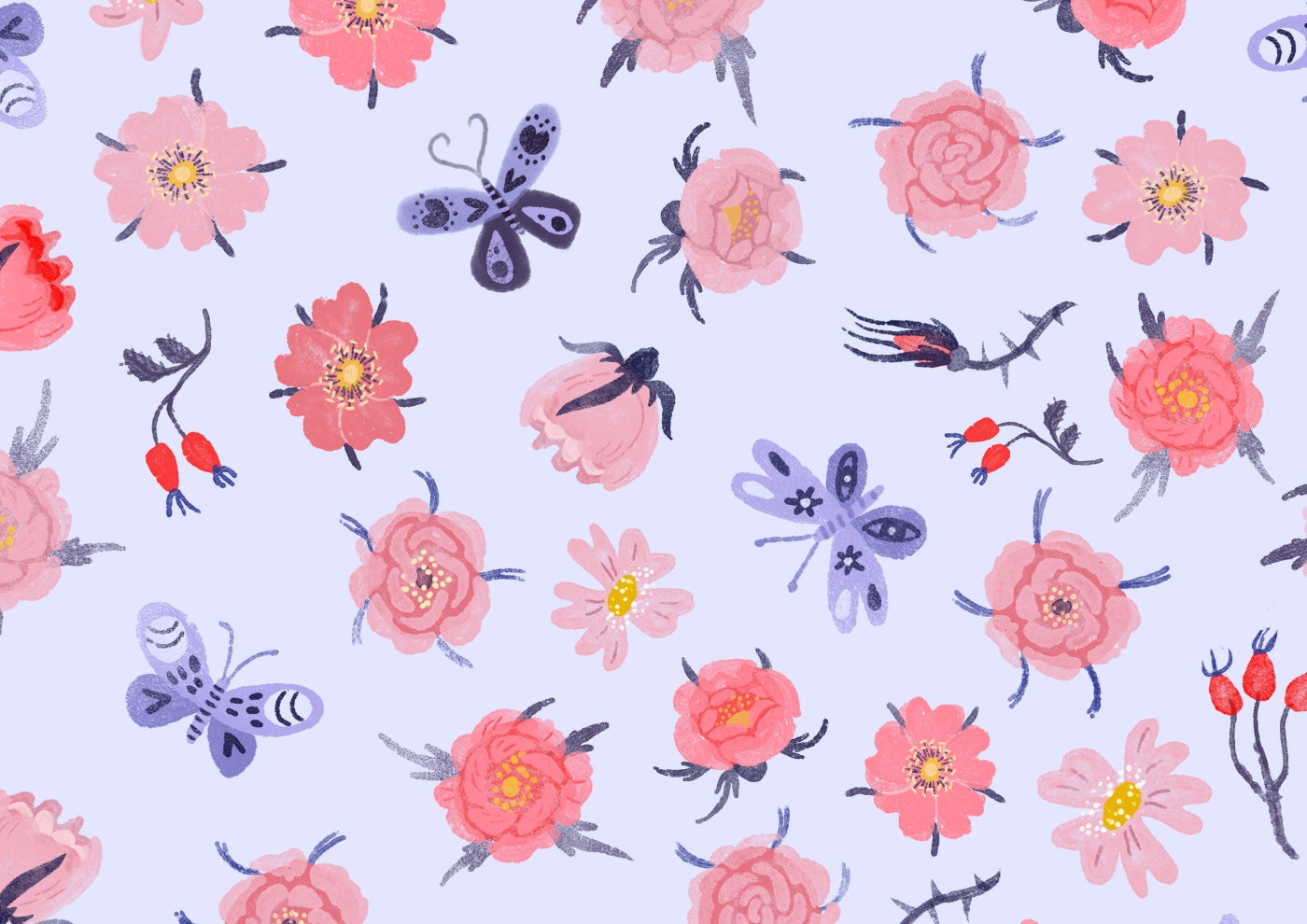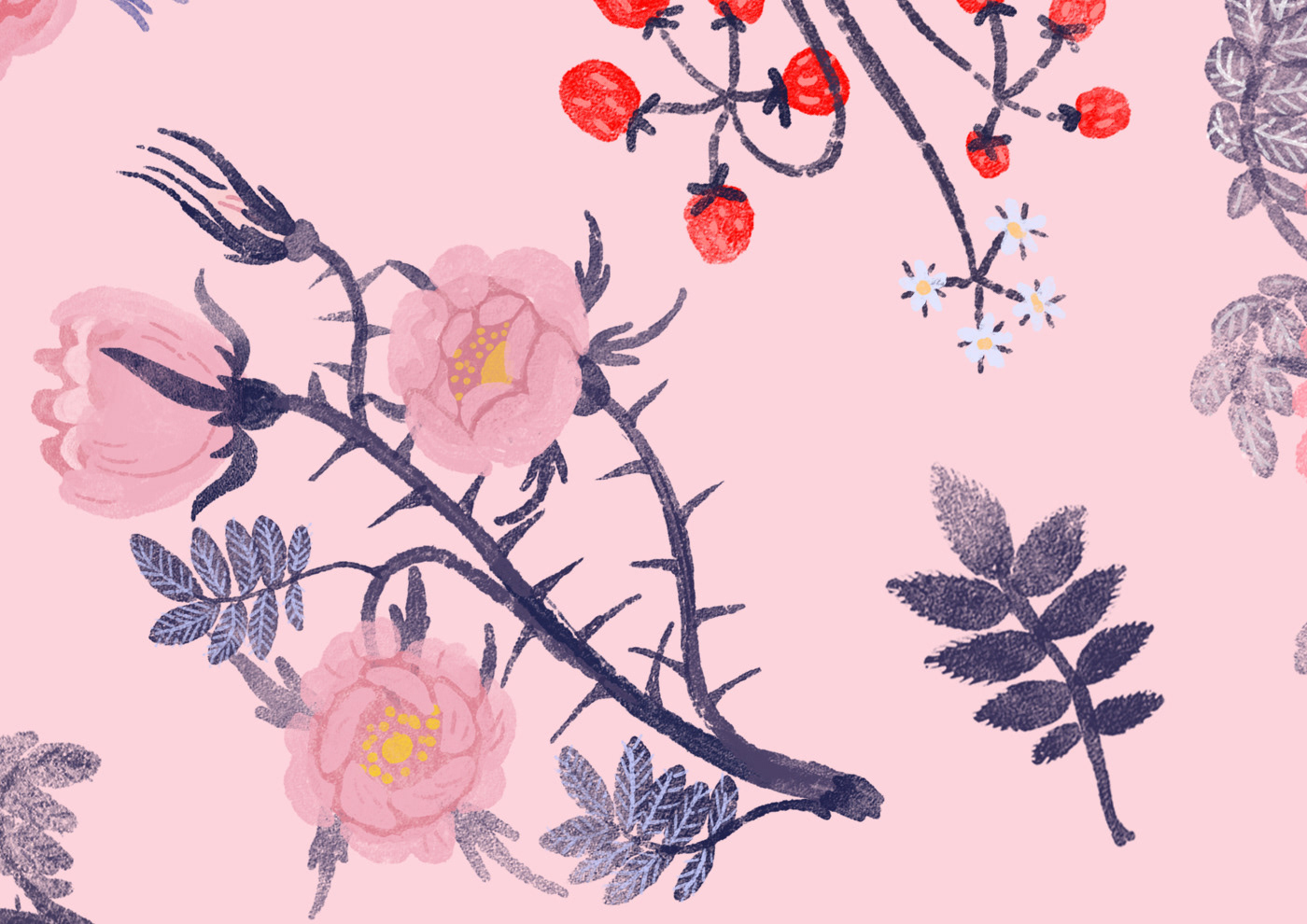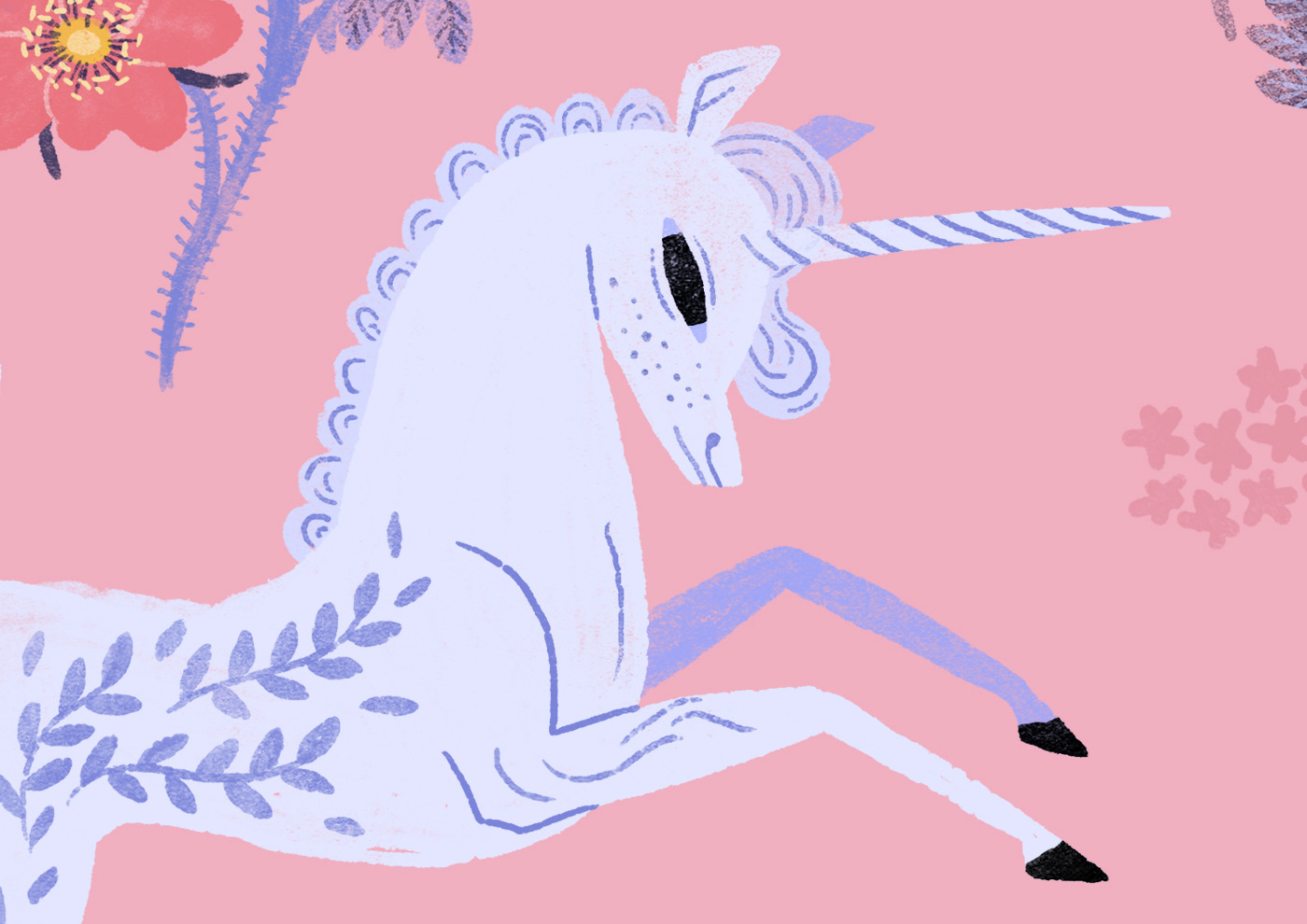 Pattern collection inspired by unicorns, roses and secret gardens.