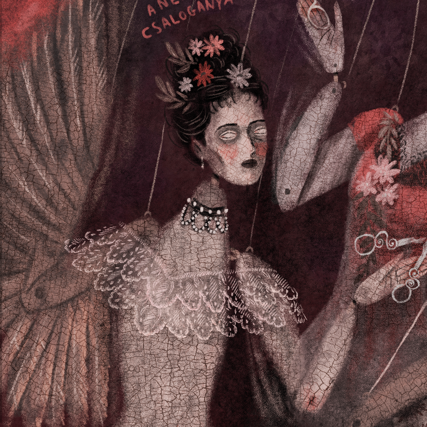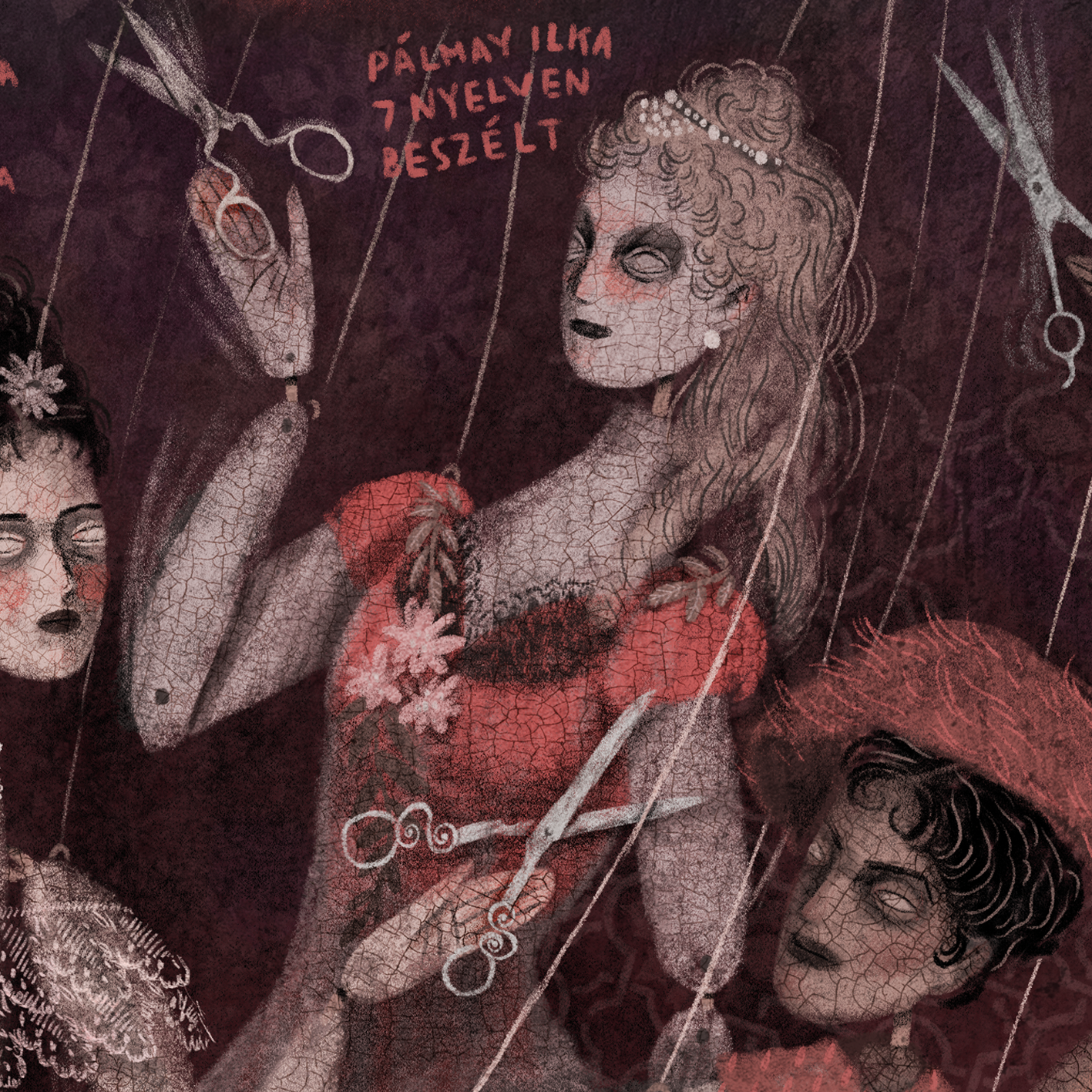 1875 was the year when the Népszínház, a theatre for the common people, opened its doors. At that time, acting was one of the few professions open to women, as they weren't taken seriously as artists or intellectuals. Three very popular prima donnas performed in this theatre: Lujza Blaha, Aranka Hegyi and Ilka Pálmay. Their lives were very eventful and a bit like a rollercoaster ride. It wasn't easy to be an actress: their popularity could decline due to age or illness, and jealous husbands could also hinder such a career. So they were still like puppets, pushed and pulled by society, the people in power, the audience or their controlling families. What really touched me about these three women is that, despite their circumstances, they didn't behave like rivals - they were friends and helped each other in solidarity. These are the scissors that can cut the binding strings.